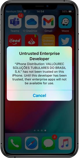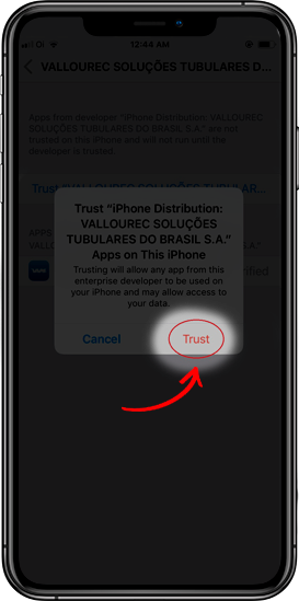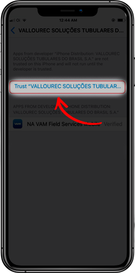 Como resolver o problema de 'Untrusted Enterprise Developer' para iOSPara resolver isso, você precisa configurar seu telefone para confiar nos aplicativos da Vallourec.